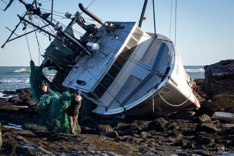 The ship sustained minimal damage when it first ran aground, but the pounding waves and historic high tides caused further damage, including the discharge of 500 gallons of diesel fuel and 5,000 pounds of fish. The insurance company has hired a salvage company to clean up the wreck, but salvage is temporarily on hold as they coordinate with nearby private property owners to access the wreck safely from land. The owner has been unable to contact the ship’s crew since the accident.