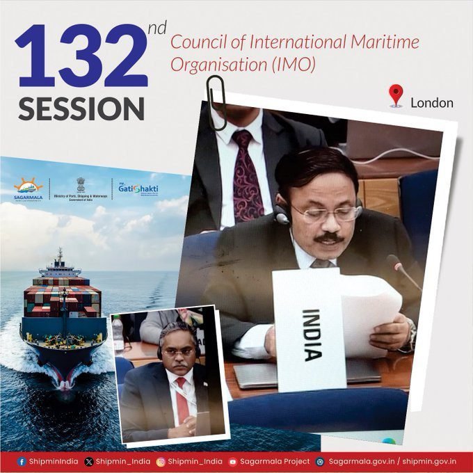 India is leading the global maritime discourse at the IMO Council Session in London. A high-level Indian delegation, headed by Shri T.K. Ramachandaran, Secretary of the Ministry of Ports, Shipping, and Waterways, is participating in the 132nd session of the Council of the International Maritime Organization (IMO) in London. This participation highlights India’s commitment to global maritime issues and its active role in shaping international maritime policies.